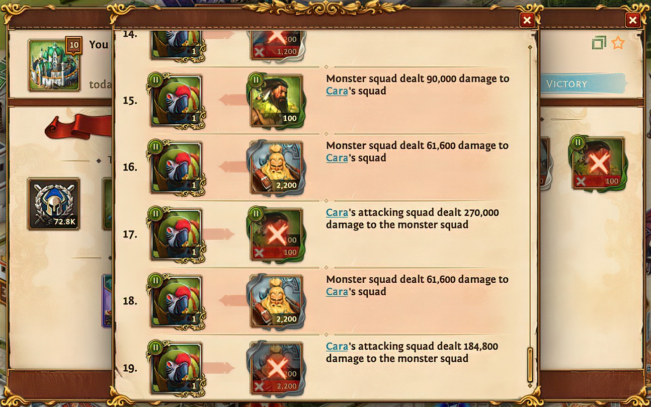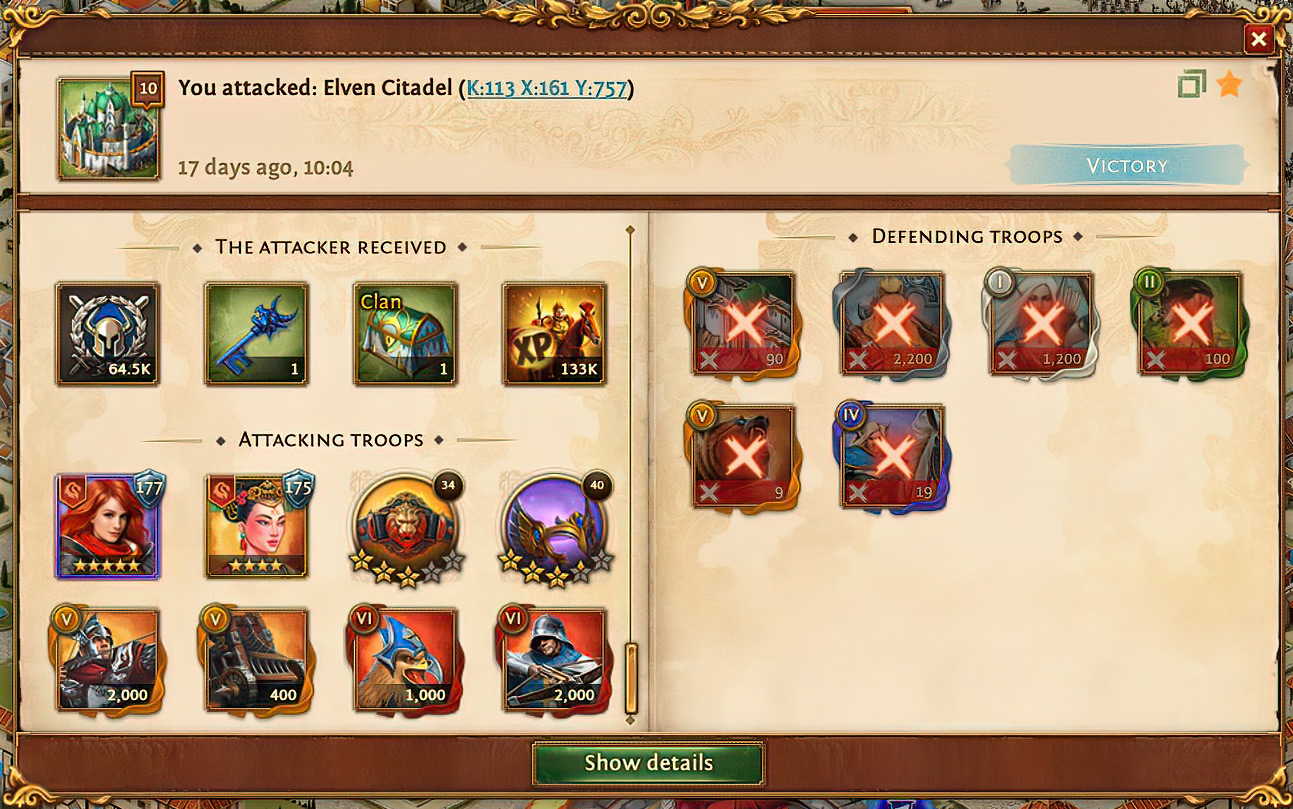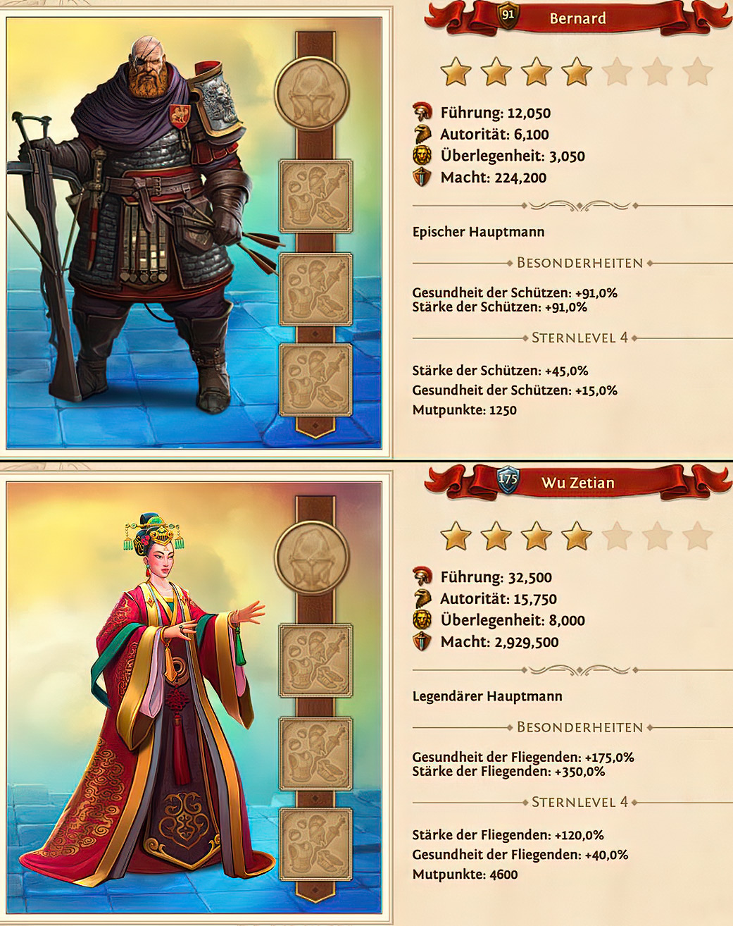 Angriff auf eine Elfenfestung Level 10 mit Gardisten. Jeder Hauptmann hat seine Daseinsberechtigung. So verstärkt Hauptmann Bernard die Schützen und sind standhafter gegen Angriffe und machen erhöhten Schaden. Hauptmann Brann verstärkt die Katapulte in Gesundheit für die Abwehr und Stärke für den Angriff. Wenn zu viele Verluste in einem Bereich, nehmt den richtigen Hauptmann mit. Tante Wu Zetian und Brunhild sind genau richtig, wenn Ihr Fliegende dabei habt. Und die smarte Ingrid verstärkt Monster, wie die Ettin. Monster machen ab Gardisten Level 6 bzw. Monster Level 6 langsam Sinn, vorher sind diese einfach nur nutzlos. Ab G6/M6 sollte man auch die Monsterforschung anwerfen. Ab G7/M7 dann bei Monsterforschung richtig pushen, der schwarze Drache hat es in sich und ersetzt die Söldner, den Unzähmbaren und den Jago..