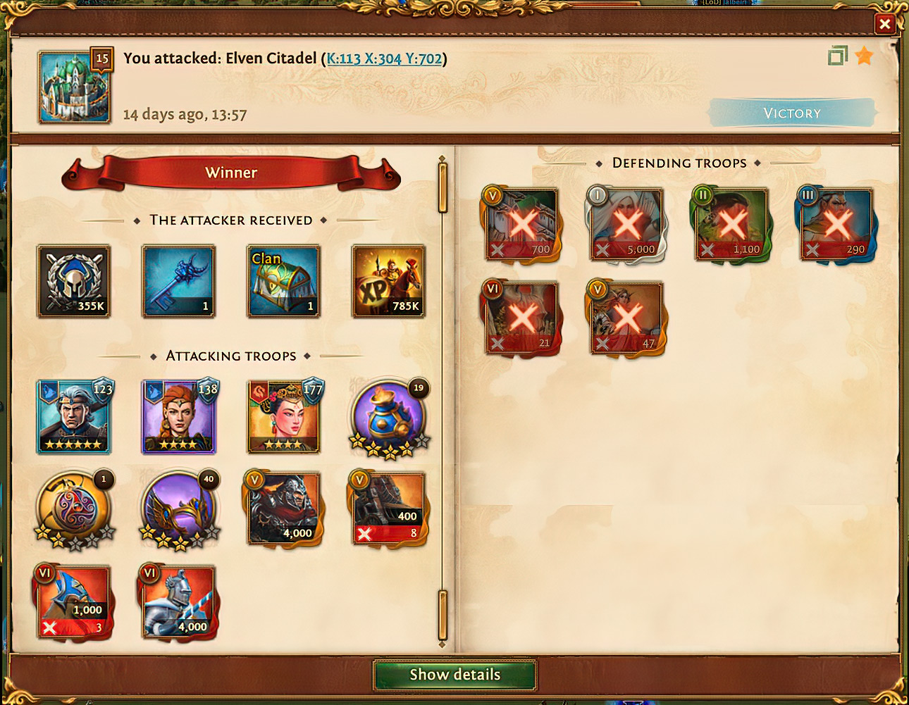 Angriff auf eine Elfenfestung Level 15 mit Söldnern