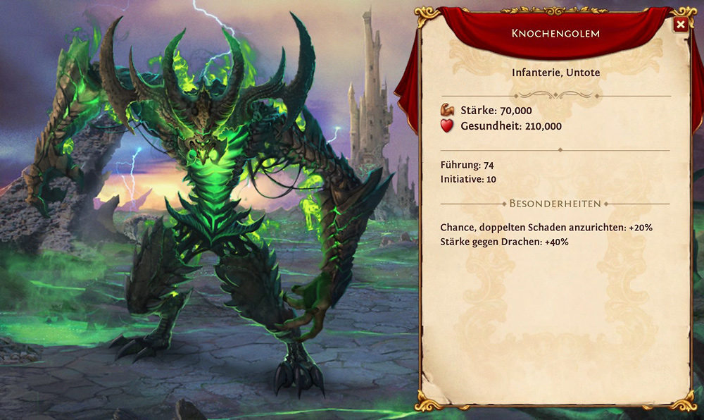 - 3 x 190 Knochengolems mit einer Stärke pro Einheit von 70.000 (Gesamt 39.9M)