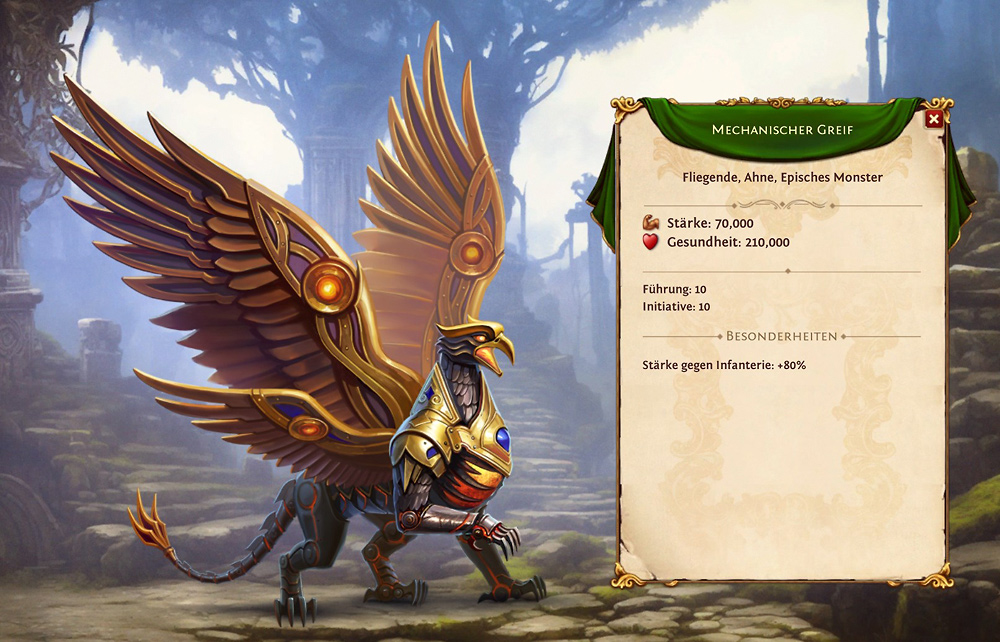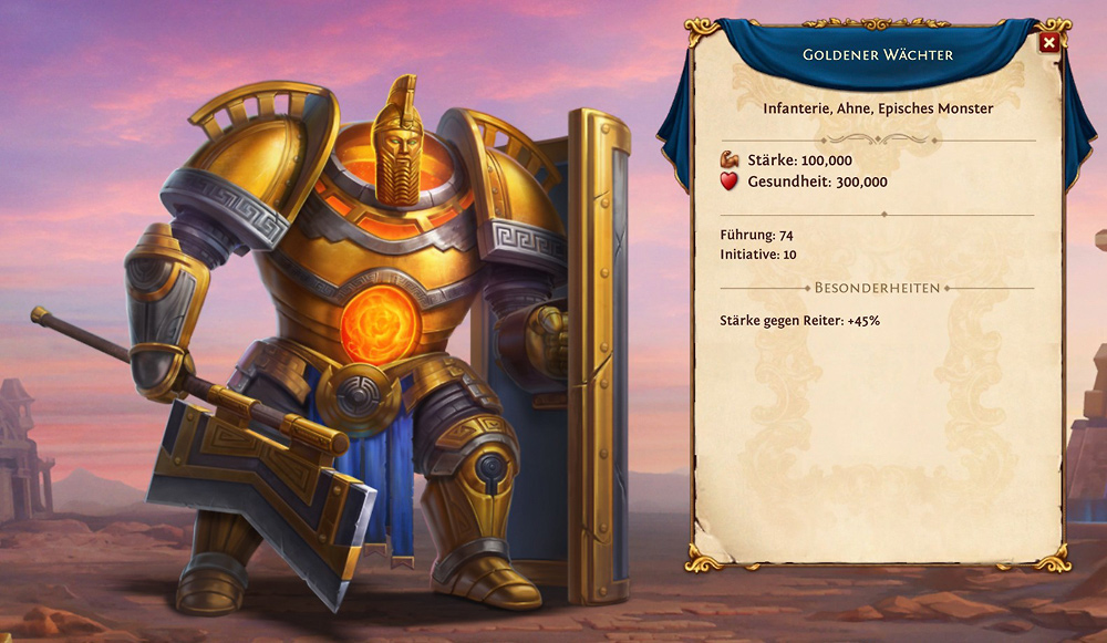 Ein goldener Koloss mit Level 28 beherbergt folgende Einheiten: