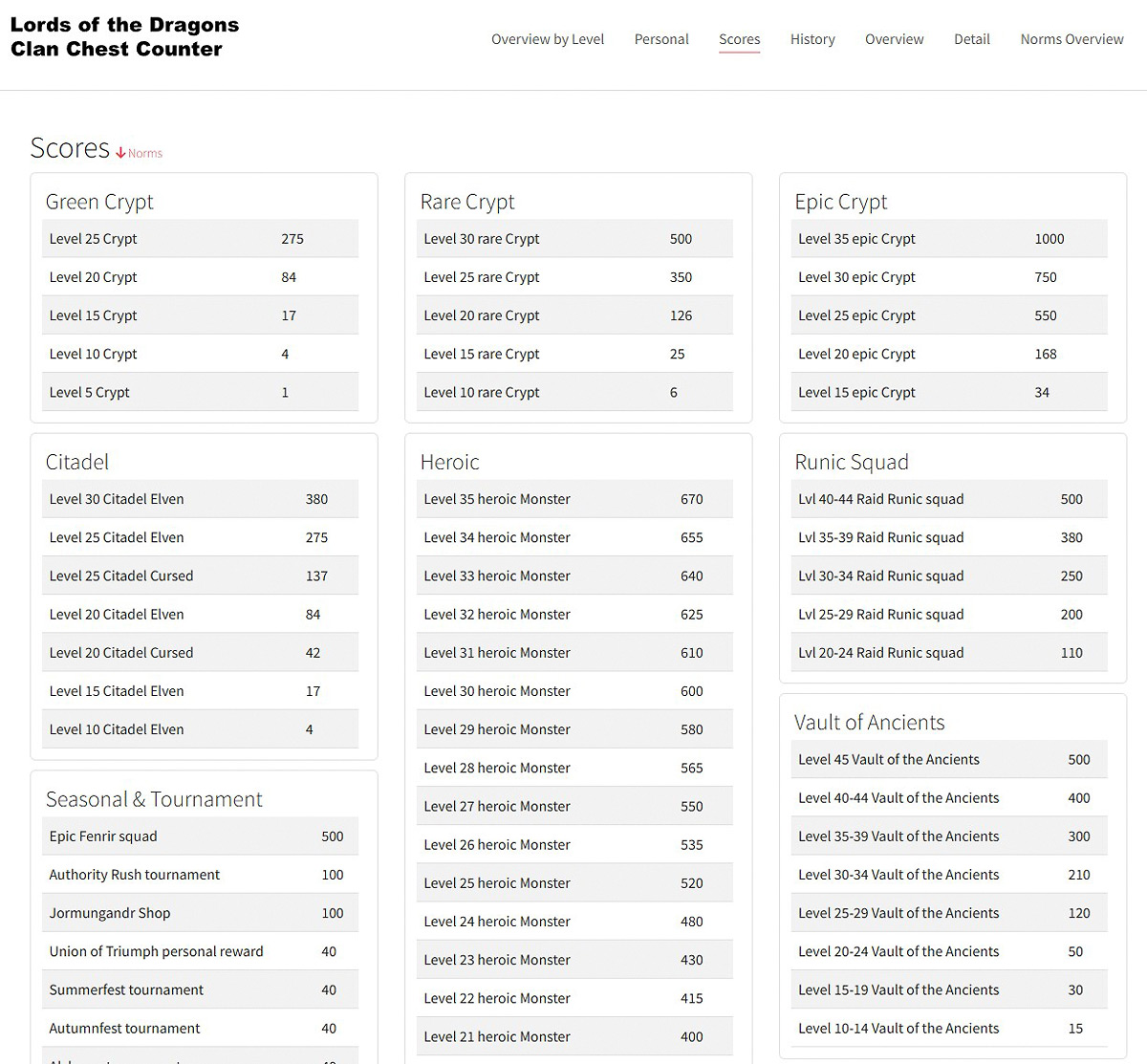 Das Lords of Dragons CCC-Portal kann ohne Logindaten aufgerufen werden und zeigt bei OVERVIEW BY LEVEL eine faire Übersicht der Spieler, welche in Level- und Machtgruppen eingeteilt sind. Ein Spieler mit einer Macht von 250 Millionen hat andere Anforderungen der Sollpunkte, als ein Spieler mit 500 Millionen Macht.