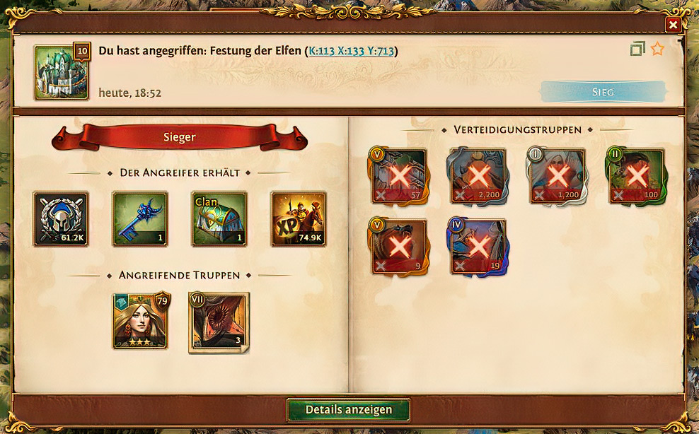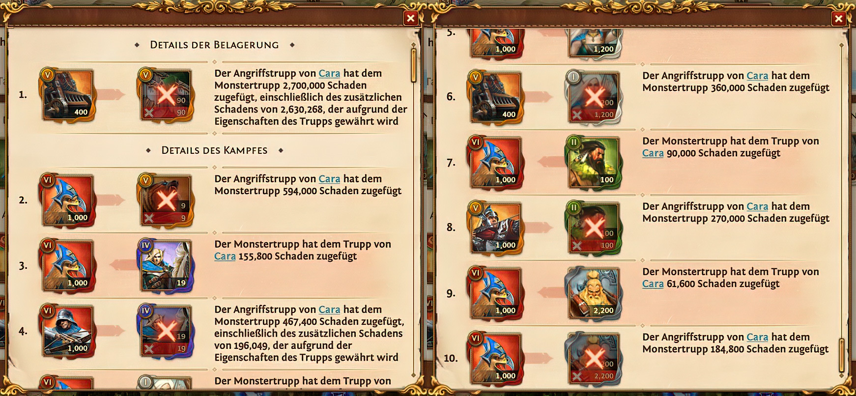 Angriff auf eine Elfenfestung Level 10 mit Gardisten. Jeder Hauptmann hat seine Daseinsberechtigung. So verstärkt Hauptmann Bernard die Schützen und sind standhafter gegen Angriffe und machen erhöhten Schaden. Hauptmann Brann verstärkt die Katapulte in Gesundheit für die Abwehr und Stärke für den Angriff. Wenn zu viele Verluste in einem Bereich, nehmt den richtigen Hauptmann mit. Tante Wu Zetian und Brunhild sind genau richtig, wenn Ihr Fliegende dabei habt. Und die smarte Ingrid verstärkt Monster, wie die Ettin. Monster machen ab Gardisten Level 6 bzw. Monster Level 6 langsam Sinn, vorher sind diese einfach nur nutzlos. Ab G6/M6 sollte man auch die Monsterforschung anwerfen. Ab G7/M7 dann bei Monsterforschung richtig pushen, der schwarze Drache hat es in sich und ersetzt die Söldner, den Unzähmbaren und den Jago..
