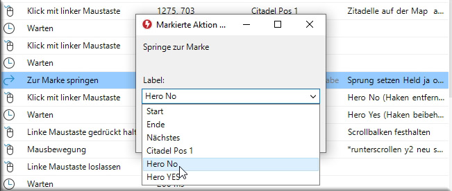 Mit Held oder ohne Held spielen funktioniert mit der Voreinstellung im Macroscript: