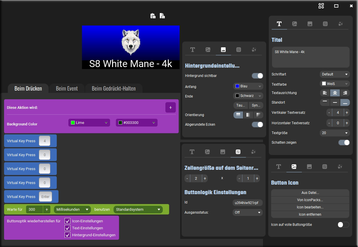 Mit einem Raster von 15 x 7 können 105 einfache Buttons erstellt werden. Mit Touch Portal gibt es keine Grenzen, die „Buttons“ können über mehrere Raster gedehnt werden, mit Bilder versehen und auch grafisch gibt es zahlreiche Möglichkeiten der Gestaltung. Wenn 105 Knöpfe immer noch zu wenig sind, der kann weitere Seiten erstellen. Es müssen nicht immer nur „Buttons“ sein, auch ein Live-Streaming mit 12fps ist möglich.