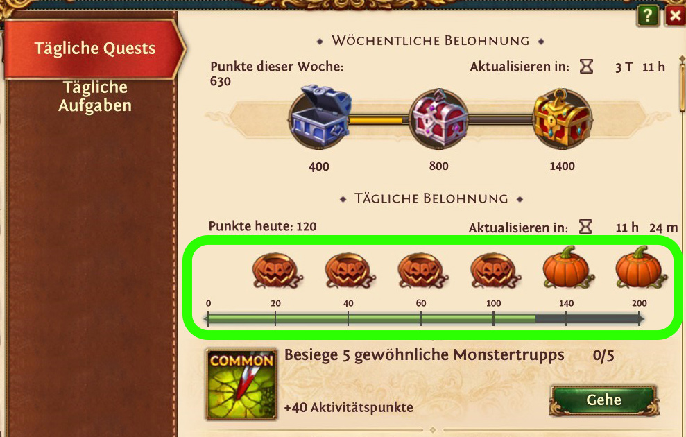 Bei der Ahnen-Veranstaltung müssen die täglichen Aufgaben erledigt werden, um die Fragmente der Schatzkarte zu sammeln. Hierbei werden die einzelnen Aufgaben erledigt, um die kleinen Truhen freizuschalten und zu öffnen. Zu besonderen Zeiten, wie zu Halloween, werden die Truhen zu Halloween-Kürbisse.