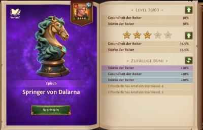 | Level Sterne | Stärke der Reiter | Gesundheit der Reiter |