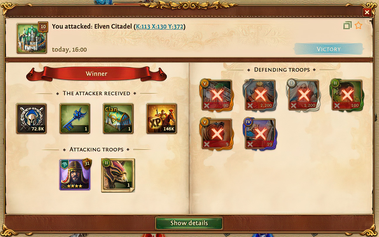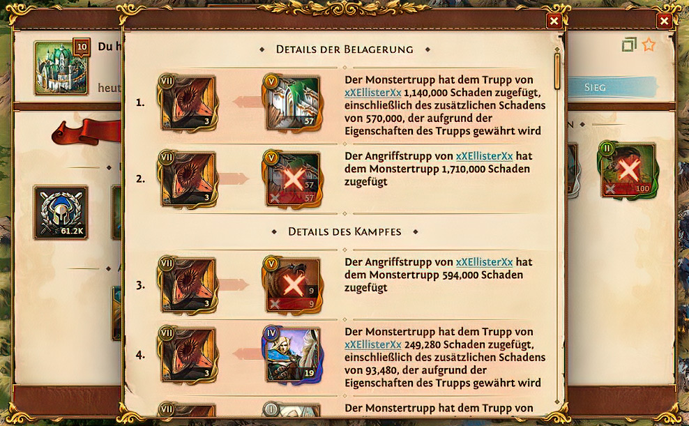 Angriff auf eine Elfenfestung Level 10 mit Gardisten. Jeder Hauptmann hat seine Daseinsberechtigung. So verstärkt Hauptmann Bernard die Schützen und sind standhafter gegen Angriffe und machen erhöhten Schaden. Hauptmann Brann verstärkt die Katapulte in Gesundheit für die Abwehr und Stärke für den Angriff. Wenn zu viele Verluste in einem Bereich, nehmt den richtigen Hauptmann mit. Tante Wu Zetian und Brunhild sind genau richtig, wenn Ihr Fliegende dabei habt. Und die smarte Ingrid verstärkt Monster, wie die Ettin. Monster machen ab Gardisten Level 6 bzw. Monster Level 6 langsam Sinn, vorher sind diese einfach nur nutzlos. Ab G6/M6 sollte man auch die Monsterforschung anwerfen. Ab G7/M7 dann bei Monsterforschung richtig pushen, der schwarze Drache hat es in sich und ersetzt die Söldner, den Unzähmbaren und den Jago..