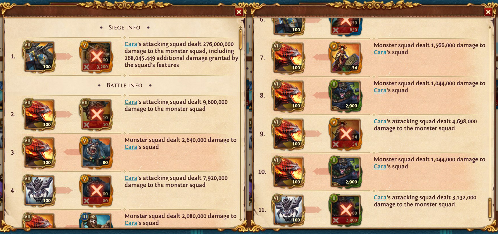 Mit dem Monster Level 7 (M7) hat man einen schwarzen Drachen an seiner Seite, welcher die Festungen etwas einfacher macht. Die Drachenmünzen zum produzieren des schwarzen Drachen wachsen auch nicht auf Bäumen, also sollte man darauf achten, das die Verluste ertragbar sind. Besonder die Hauptfrau Ingrid unterstützt Monster in der Hinsicht hervorragend. Ingrid, Brann und Wu Zetian sollte man beim Leveln, genauso wie die anderen Hauptmänner und Hauptfrauen, nicht unberücksichtigt lassen.