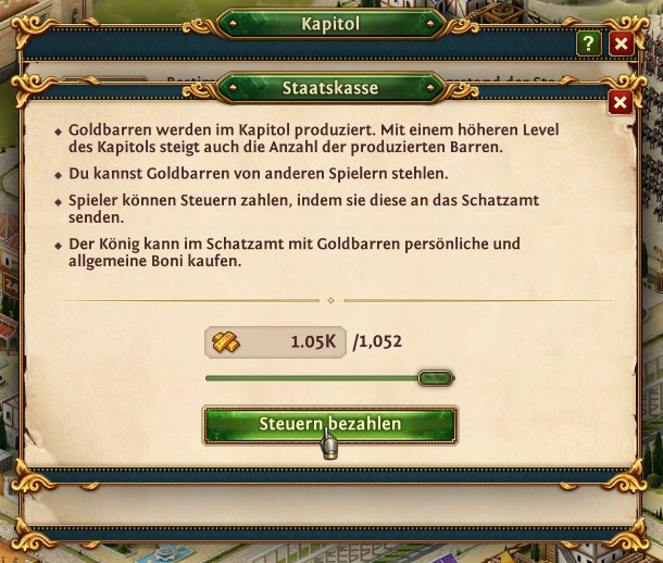 Zahlt nicht jeder seine Goldbarren, oder es kommen zu wenige in das Königshaus, dann können auch keine königlichen Boni geschaltet werden. In einigen Königreichen werden sogar die Steuern von Steuereintreibern eingezogen. Und wer möchte keine Boni haben?
