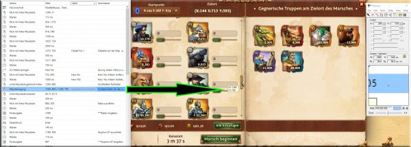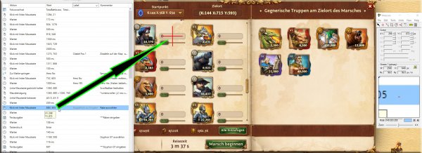 Prüfen, ob die richtige Position noch angeklickt wird für die Eingabe der Truppeneinheiten. Wenn die Fadenkreuzposition nicht stimmt, den Scriptbefehl doppelt andrücken. Nun in das korrekte Eingabefeld drücken. Die neue Klickposition wird übernommen.