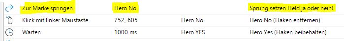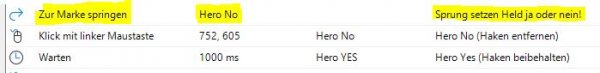 Mit Held oder ohne Held spielen funktioniert mit der Voreinstellung im Macroscript: